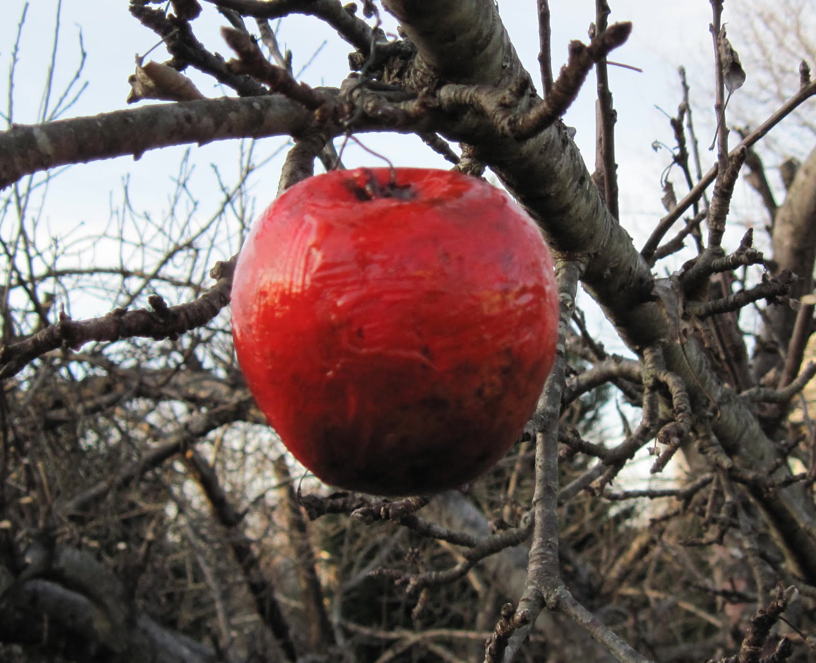 So what the heck is that ugly thing in the photo at the top? Instead of buying coddling moth traps for my apple tree each year, a few years ago I purchased three plastic apples at a discount craft store, drilled a hole in them, inserted a recycled florists wire, coated them in tangle trap and hung them on my tree. The next year, I cleaned them off, painted them red and re-coated them. This is pretty effective at catching coddling moths that bore tunnels through your apples. I do purchase coddling moth pheromone each year (when the garden catalog I favor has a timely sale) that I will attach to the traps. This increases the efficiency of the traps at catching the moths, but I do not need to purchase new traps each year. I have heard of other similar solutions: using red rubber balls, and old, worn billiard balls with tangle trap and hanging those.